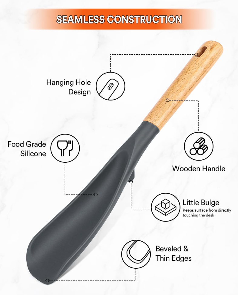 Our silicone cooking spoon is Made from food-grade silicone, to withstand high temperatures up , making it perfect for your cooking needs, whether it's stirring, scooping, or serving.