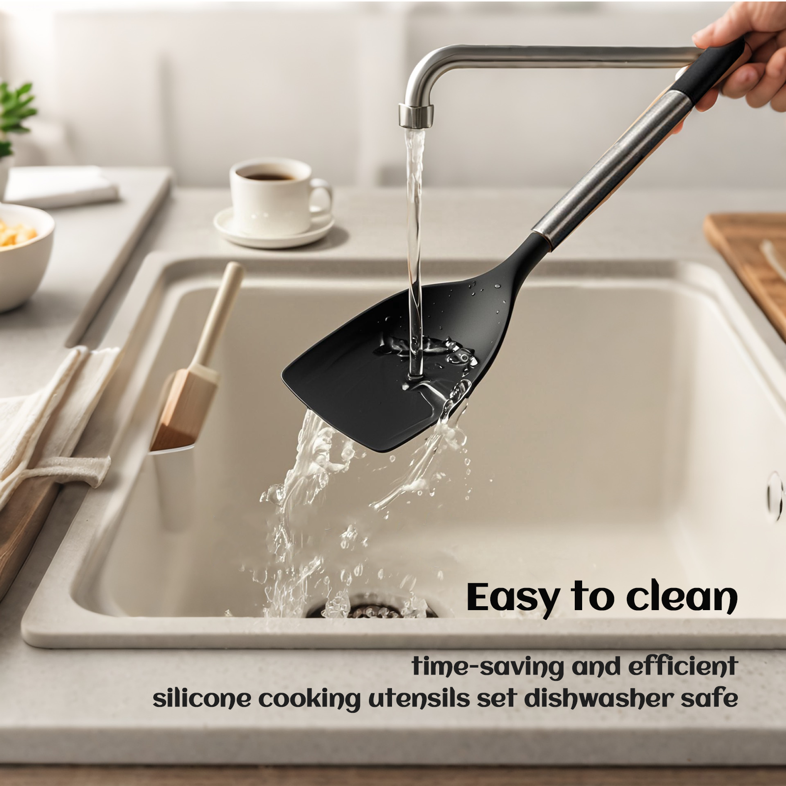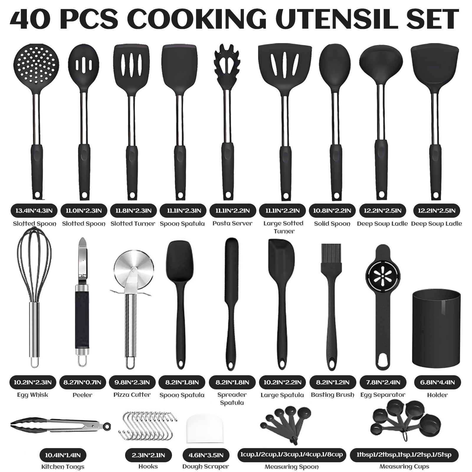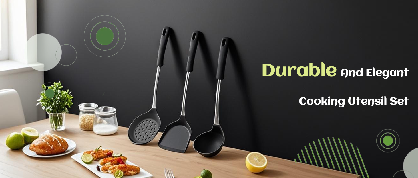 Stainless Steel Handle Coated with Silicone, Non Stick Turners, Heat Resistant Rubber Spatulas for Fish, Eggs, Pancakes, WOK, Black